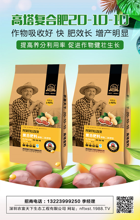 深圳農(nóng)富天下生態(tài)工程有限公司的這款【花生專用復(fù)合肥料20-10-10】采用約旦進口鉀肥和國家一等全溶性磷原料生產(chǎn),全水溶、,具有松土、保水功能,作物吸收好,快,肥效長,增產(chǎn)明顯。產(chǎn)品含大量元素氮、磷、鉀、中微量元素鈣、鎂、硫、鋅等融合在一起,供給作物全面、均衡、的養(yǎng)分、顯著提高養(yǎng)分利用率,促進作物健壯生長,提高作物的產(chǎn)量和品質(zhì)。