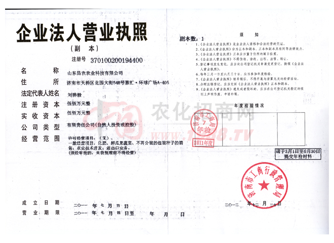 山東昌農(nóng)農(nóng)業(yè)科技有限公司成立于2011年7月1號(hào),位于濟(jì)南市天橋區(qū)北園大街548號(hào)嘉匯?環(huán)球廣場(chǎng)。是一家以肥料銷售、農(nóng)業(yè)項(xiàng)目開(kāi)發(fā)的綜合性銷售服務(wù)企業(yè),企業(yè)擁有高級(jí)農(nóng)藝師、農(nóng)藝師、技術(shù)員組成的專家團(tuán)隊(duì)和數(shù)名精英業(yè)務(wù)員。并且我公司與山東省農(nóng)科院等科研單位長(zhǎng)期合作,并給我們提供先進(jìn)高端技術(shù),我們公司代理銷售各種高端技術(shù)及國(guó)家發(fā)明專利的優(yōu)質(zhì)產(chǎn)品。