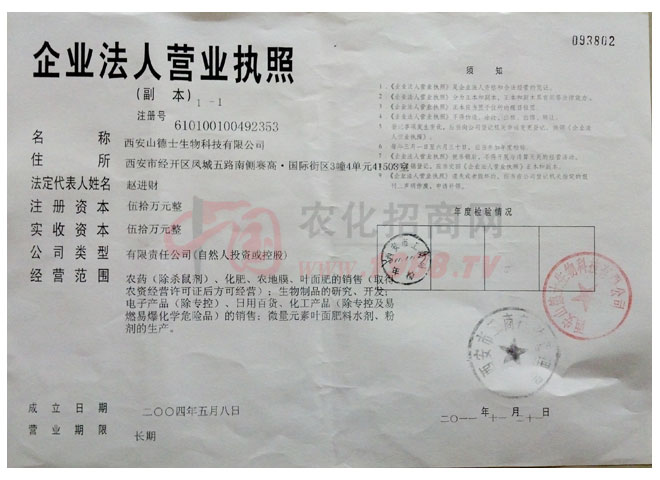 西安山德士生物科技有限公司位于西安經(jīng)濟(jì)技術(shù)開(kāi)發(fā)區(qū)大興東路46號(hào), 是以生物制品、化肥、葉面肥的開(kāi)發(fā)、銷售、生產(chǎn)為一體的綜合性企業(yè)。公司擁有總資產(chǎn)1300萬(wàn)元,年銷售額8000萬(wàn)元。占地面積6400平方米,職工人數(shù)62人,其中各類技術(shù)人員17人。技術(shù)力量雄厚,擁有肥料、葉面肥、生物酶制品,四條國(guó)內(nèi)先進(jìn)的現(xiàn)代化生產(chǎn)線,生產(chǎn)工藝先進(jìn),并通過(guò)省級(jí)三級(jí)質(zhì)量體系認(rèn)證,檢驗(yàn)設(shè)備先進(jìn),質(zhì)檢部配有高效液相色譜儀、高效氣相色譜儀、721分光度計(jì)、原子分析儀等先進(jìn)檢測(cè)設(shè)備,質(zhì)檢人員5名,可、快速進(jìn)行產(chǎn)品質(zhì)量檢測(cè)和控制分析。