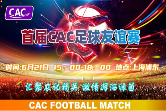 為了讓大家在參會之余放松身心,鍛煉身體,享受足球帶來的獨特魅力,主辦方將于6月21日(展會前一天)在魔都上!肿闱蚬珗@舉辦首屆CAC足球友誼賽。